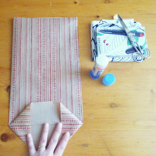 2) Piegate il bordino verso l’interno e passateci su una dose abbondante di colla.