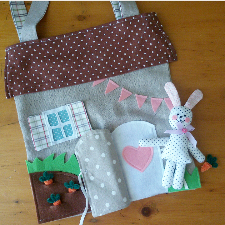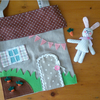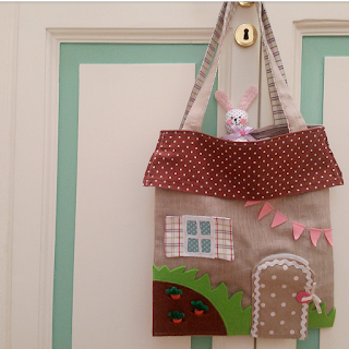 Per questa iniziativa ho immaginato di donare la mia creazione ad una bimba: per lei è nata questa borsa-casetta in tessuto.