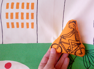 Per il sacco ho usato una bellissima stoffa Ikea, mentre le istruzioni per realizzarlo le prese qui. Io ho solo aggiunto due maniglie rosse, un bordino a pom pon rossi e della tela per rinforzarne il fondo.